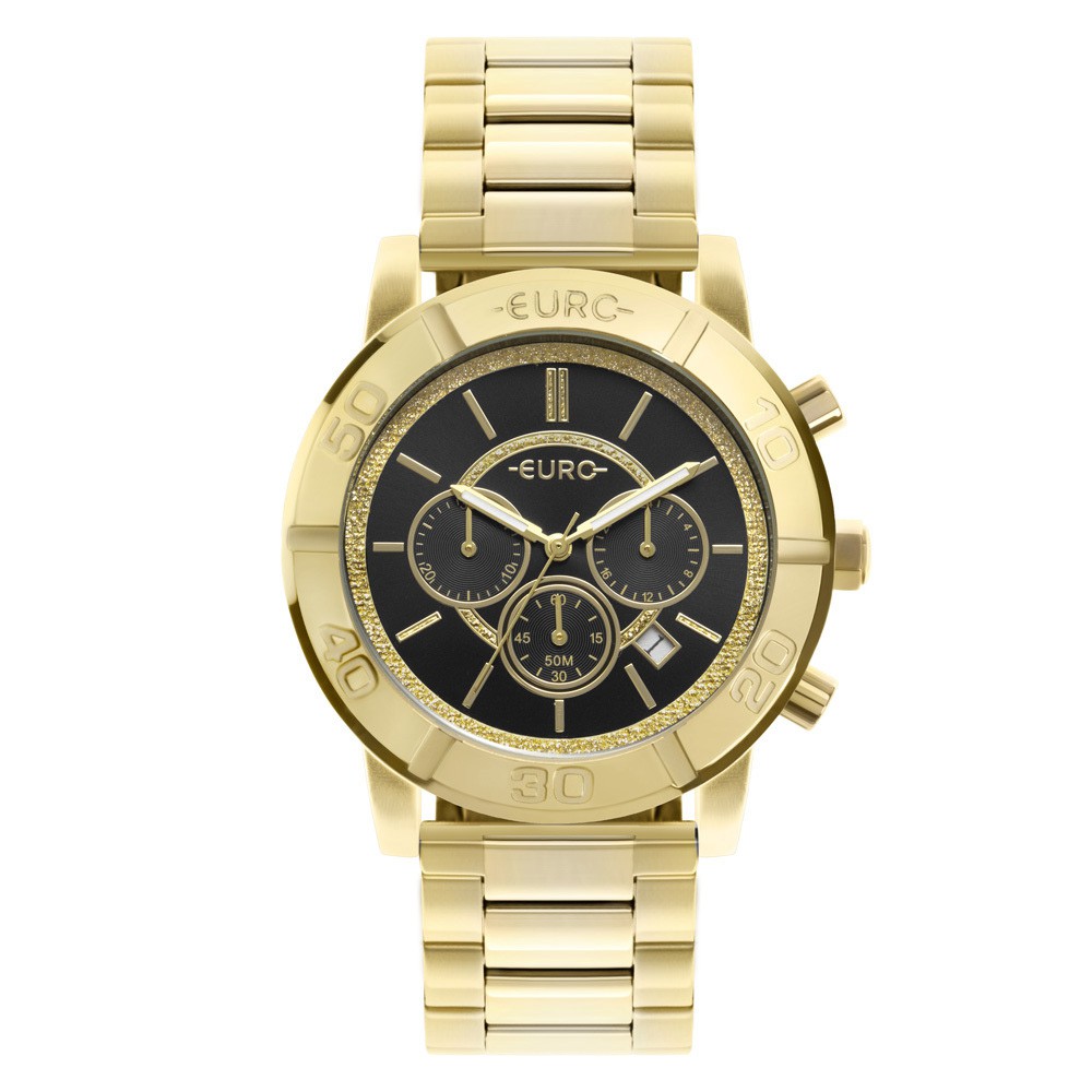 Cor da Caixa: Dourado; Formato da Caixa: Redondo; Material da Pulseira: Aço; Tipo de Fecho: Trava Lateral; Cor do Mostrador: Preto; Cor da Pulseira: Dourado.