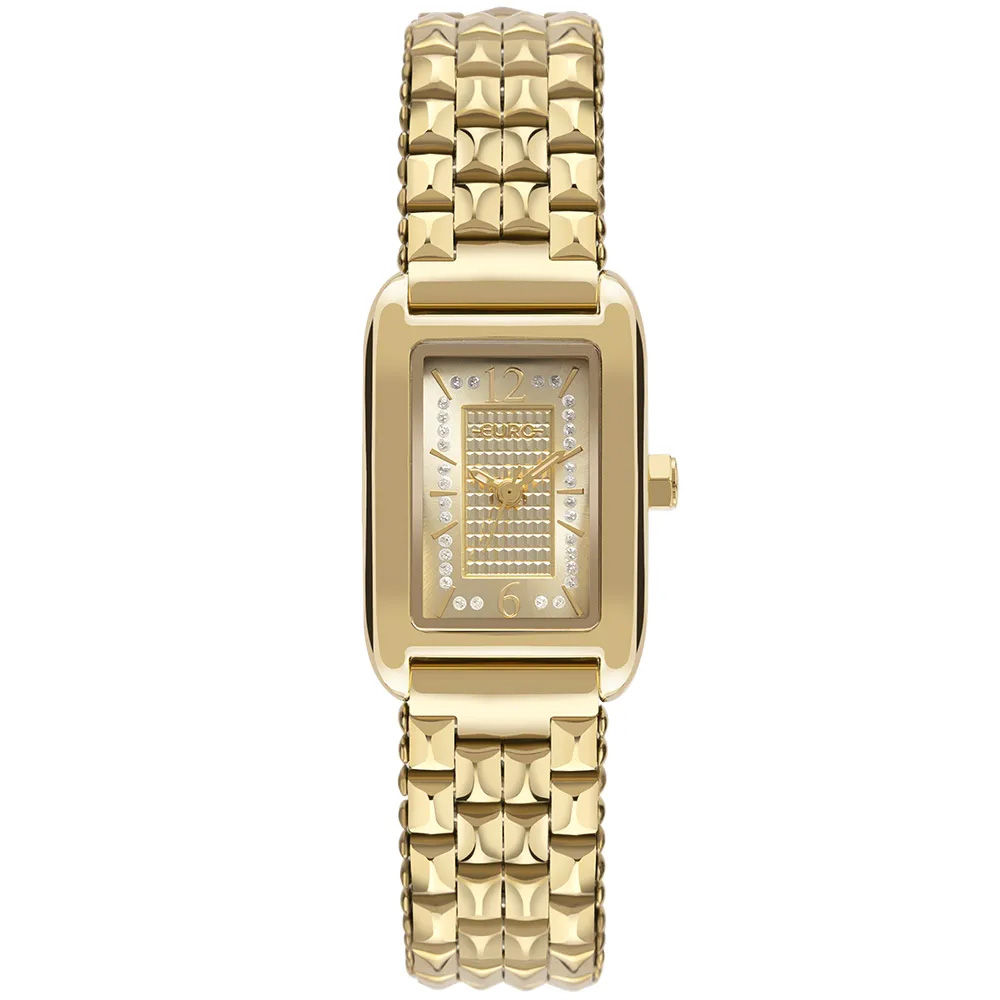 Possui pulseira trabalhada e mostrador dourado com brilho que toda mulher Euro gosta.