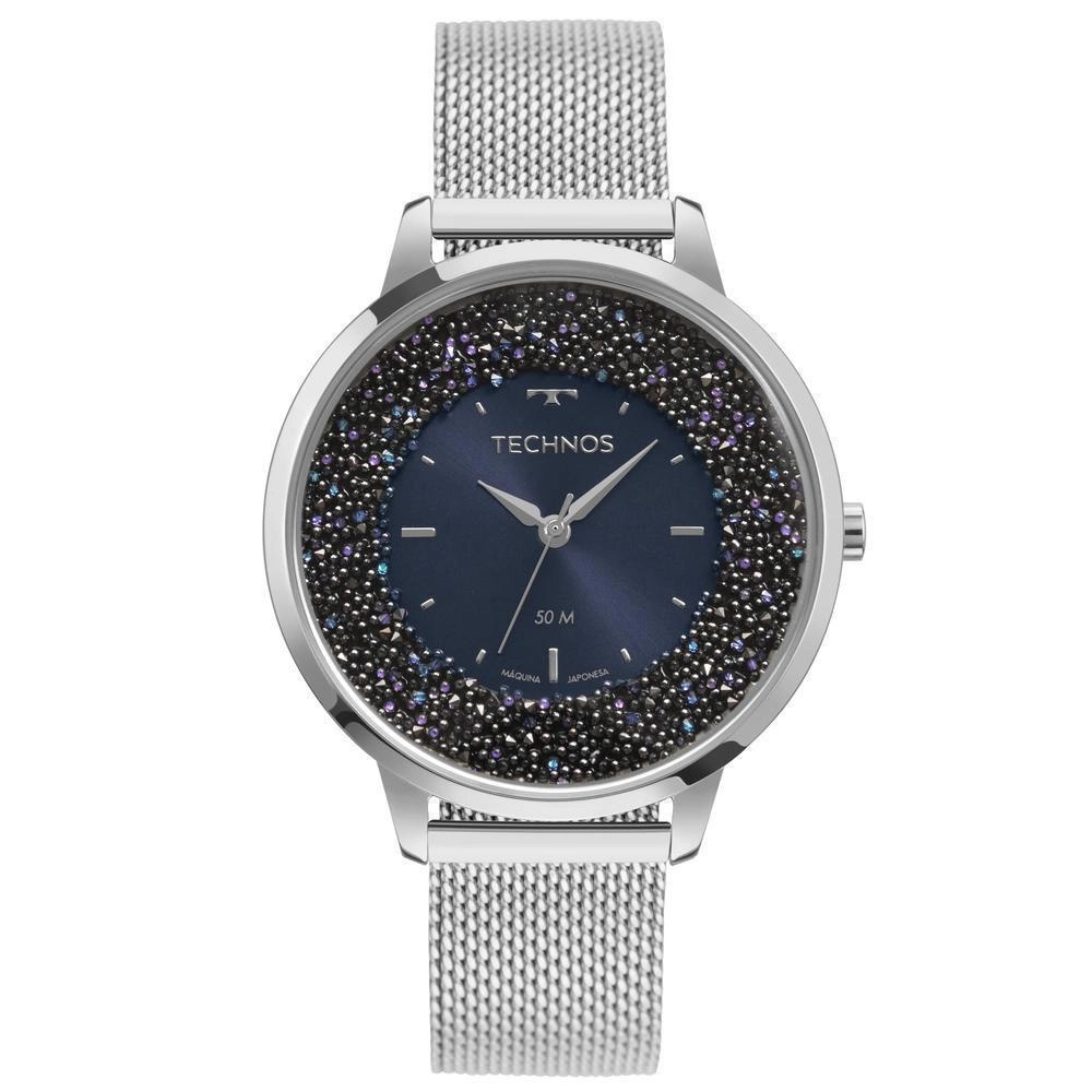 O novo Technos Crystal apresenta mostrador azul escuro com duas camadas, que fazem o contraste perfeito entre si: a primeira, no centro do mostrador, possui um acabamento escovado; enquanto a segunda, na área mais externa, conta com a aplicação de autênticos cristais de origem austríaca, os cristais mais famosos do mundo, em uma elegante malha diferenciada.