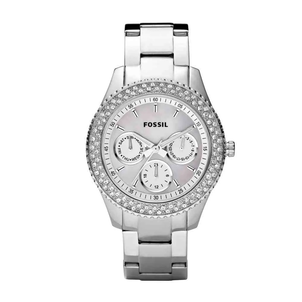 Com uma caixa redonda prata de 38mm, mostrador e pulseira de aço prateados, o relógio multifunção tem um acabamento ímpar com cristais no aro, uma caixa super marcante, dando aquele toque fabuloso no pulso!