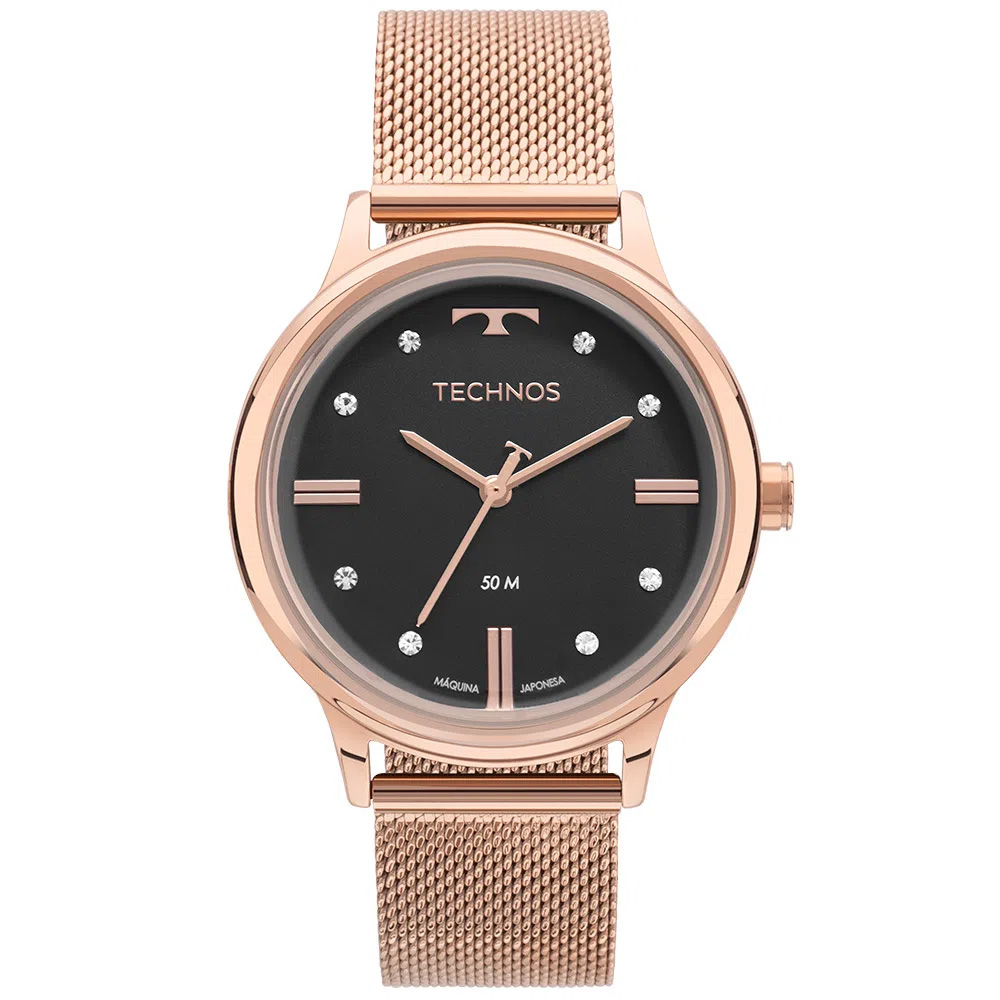 Relógio Technos Style feminino com caixa e pulseira mesh de aço em banho rosé.